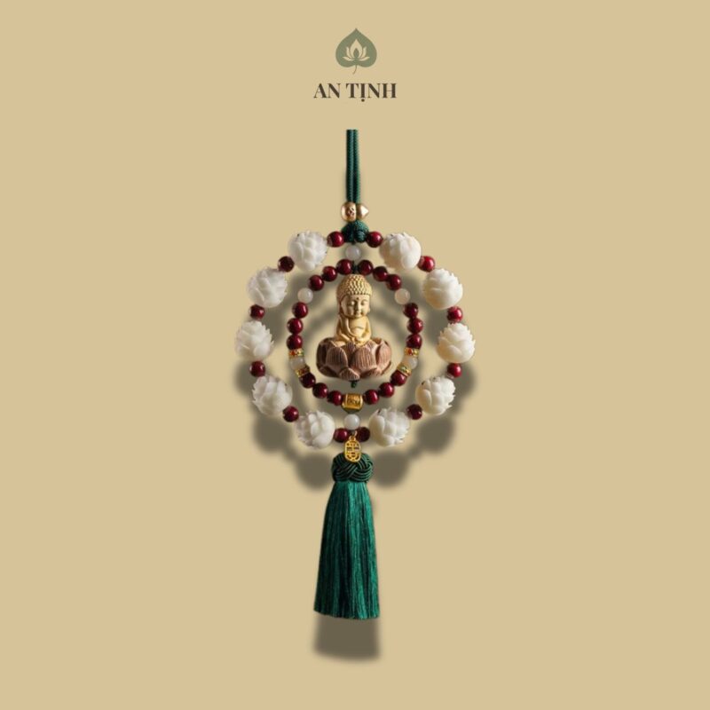 Biến không gian nội thất ô tô trở nên ấm cúng và linh thiêng với Khánh Treo Xe Ô Tô Phật Thích Ca 10 Bông Sen Kép. Đây là vật phẩm phong thủy cao cấp từ An Tịnh, kết hợp giữa sự trầm mặc của gỗ và vẻ đẹp thanh khiết của hoa sen, mang lại cảm giác bình an tuyệt đối cho người cầm lái trên mọi hành trình.