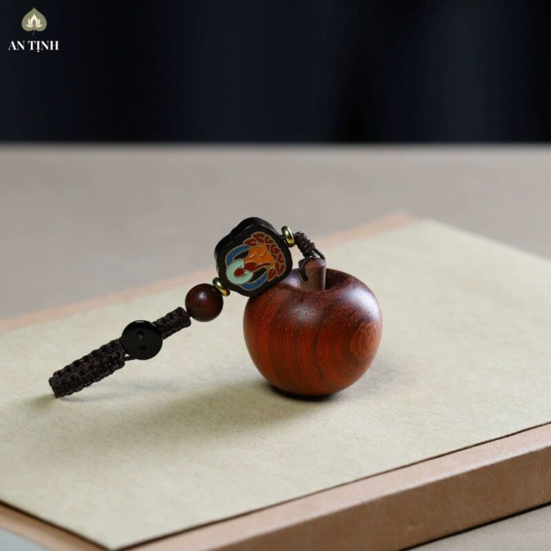 - Quả Táo Gỗ Đàn Hương (Bình An Quả): Trong văn hóa Á Đông, quả Táo (Bình Quả) đồng âm với chữ “Bình” trong “Bình An”. Được chế tác từ Gỗ Đàn Hương với vân gỗ tự nhiên mềm mại và sắc đỏ nâu trầm ấm, quả táo tượng trưng cho sự trọn vẹn, đủ đầy và lời chúc “Thượng lộ bình an” cho người sở hữu.