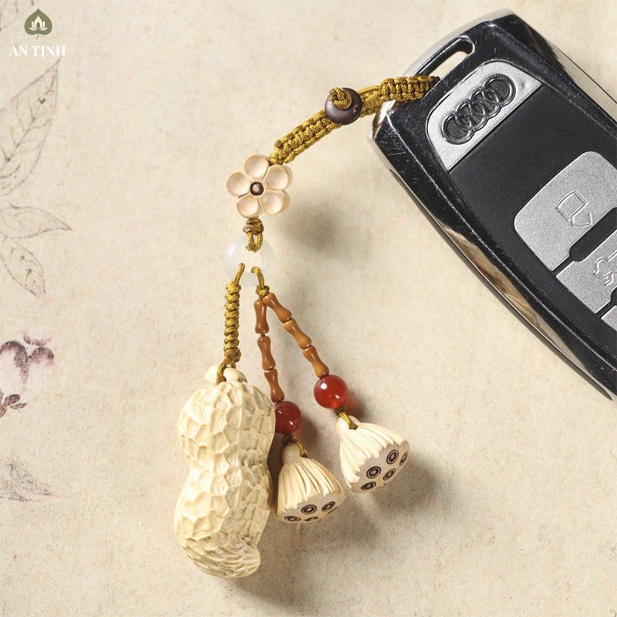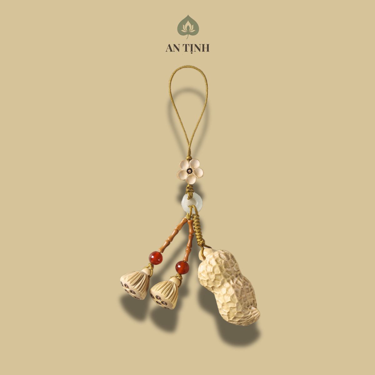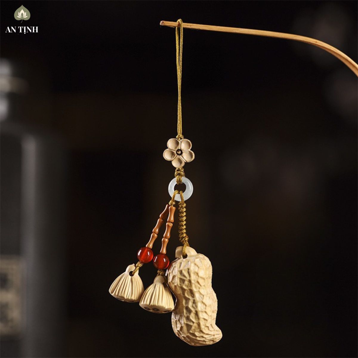 – Hạt gỗ chạm khắc hình đậu phộng, biểu tượng cho sự sinh sôi, tài lộc dồi dào và gia đình sung túc.