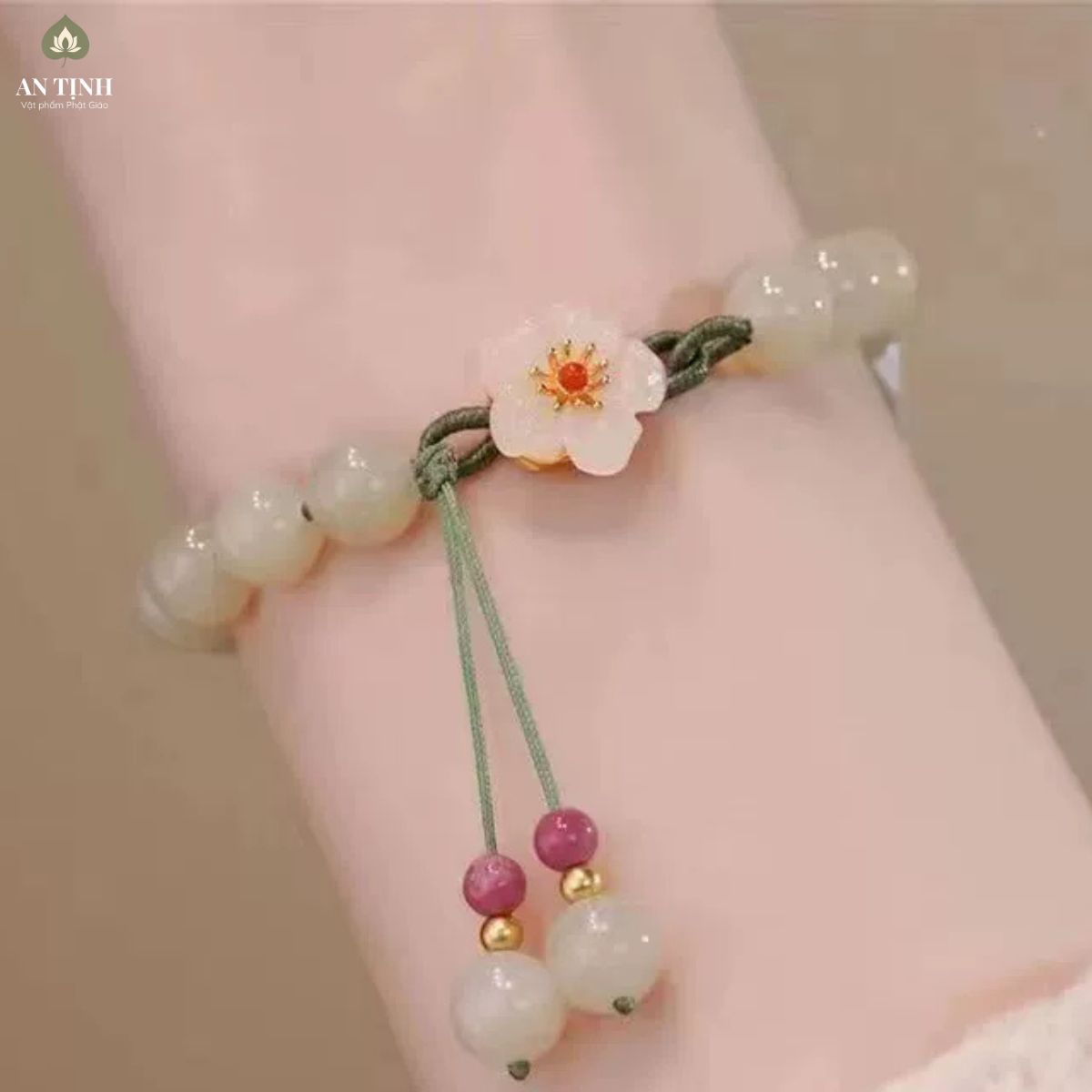 Trong văn hóa tâm linh, hoa đào không chỉ đại diện cho mùa xuân và sự sống mà còn có tác dụng trừ tà, thu hút vượng khí và năng lượng tích cực. Khi kết hợp trong chiếc vòng đeo tay, biểu tượng này trở thành vật phẩm hộ thân tinh tế, giúp người đeo luôn giữ tâm an, hướng đến sự thanh tịnh và yêu thương.