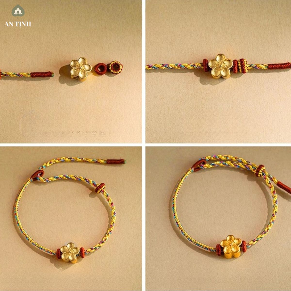 | Tên sản phẩm | Vòng Tay Chỉ Vàng Tuế Tuế Bình An Phối Charm Hoa |