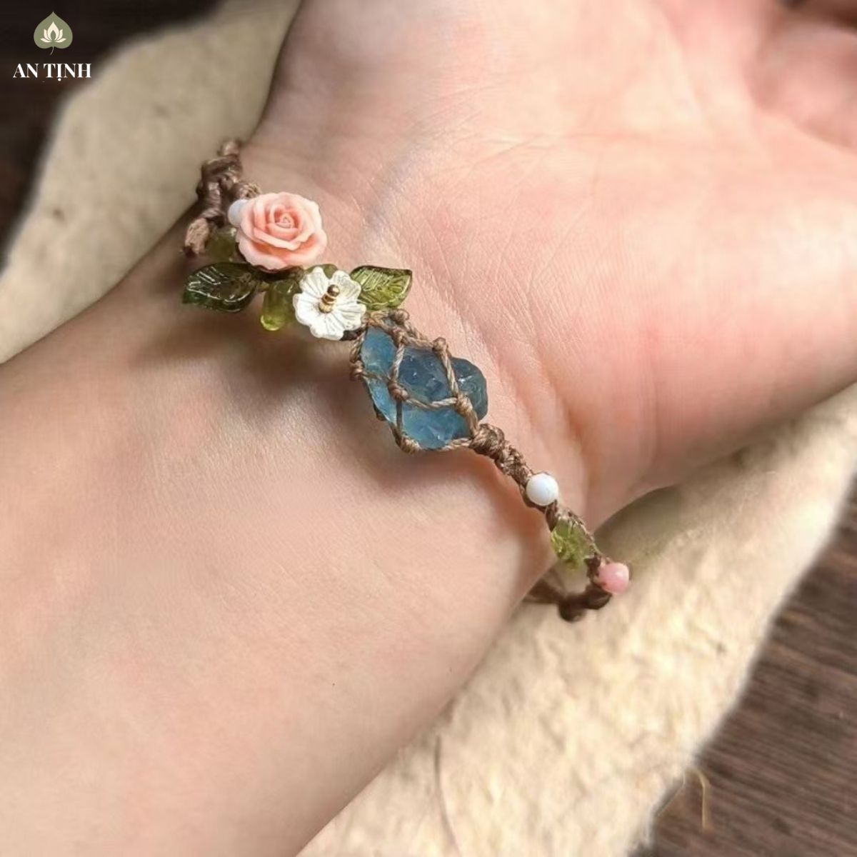 Tên sản phẩmVòng Tay Đá Aquamarine Phối Hoa Vintage