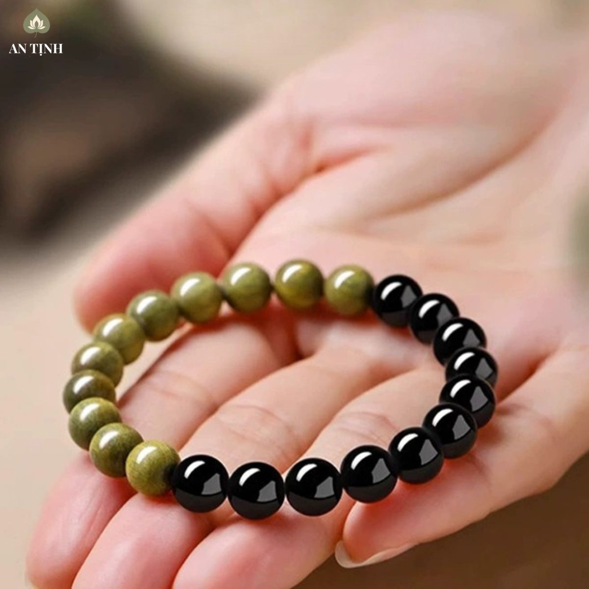 Vòng Tay “Mộc Thạch Giao Hòa” – Đàn Hương Xanh Mix Obsidian